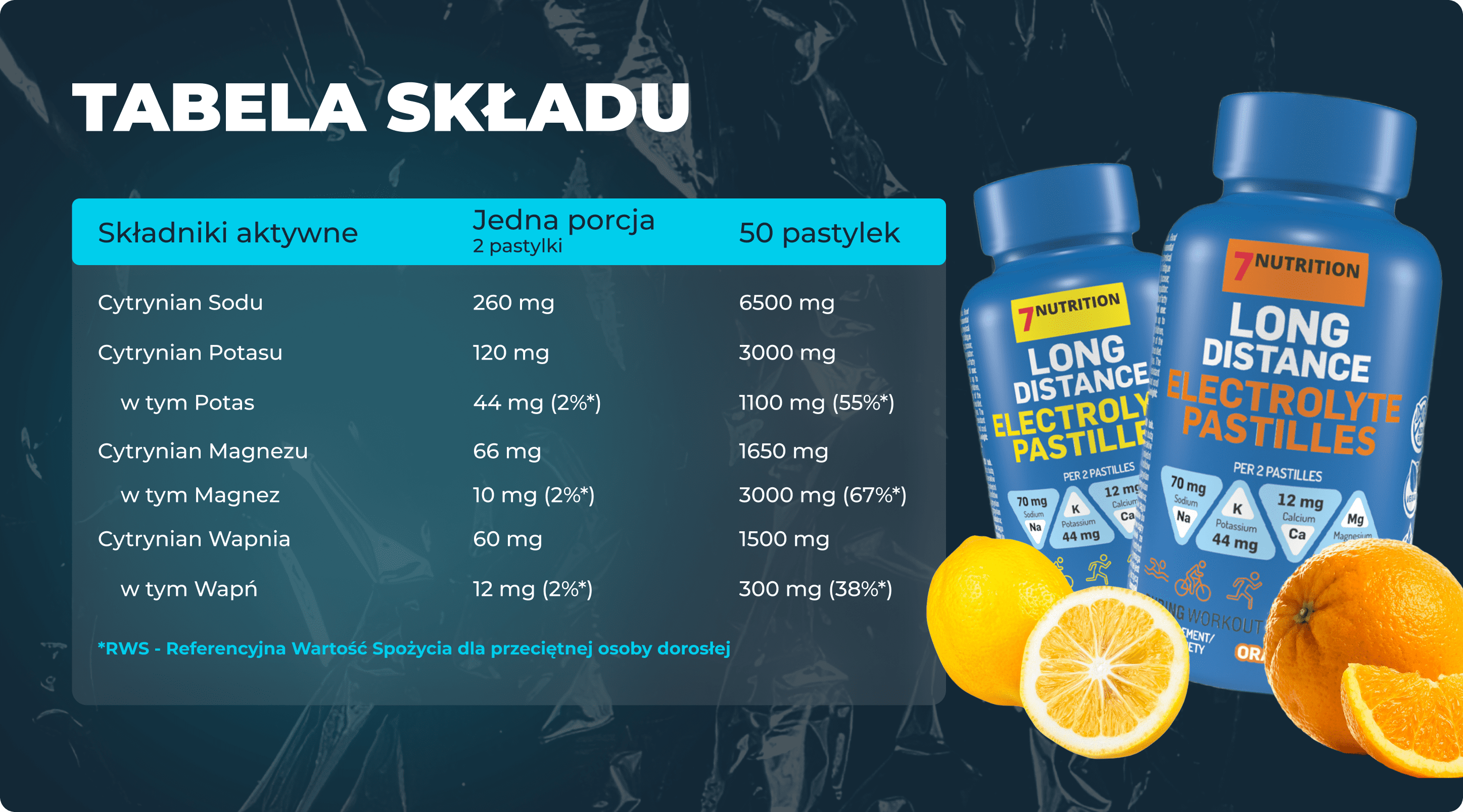Ponadto, „7Nutrition Long Distance Electrolyte Pastilles” wspierają prawidłowy metabolizm energetyczny, zapewniając cenne wsparcie podczas długotrwałych treningów i zawodów.